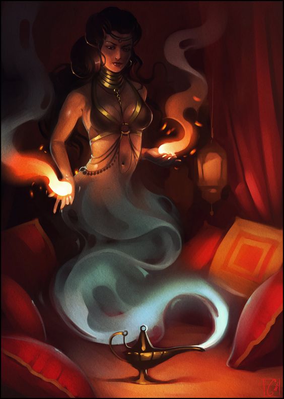 Yemnazi is an evil Efreeti from Yaebet. She is rumored to offer travelers a single wish. Unbeknownst to them it comes with a hefty cost; a piece of their soul. Beware if you ever come across her mysterious jet black lamp.